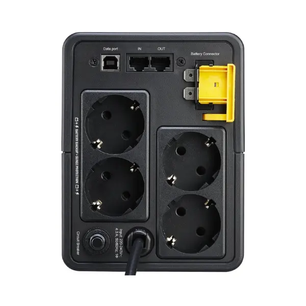 This UPS includes four Schuko (CEE 7/7) outlets to connect multiple devices securely, and its 1.2-meter cable provides flexibility in setup. With a compact tower design and sleek black finish, the BX950MI-GR fits seamlessly into any environment. The unit’s simple plug-and-play setup makes it user-friendly, even for those with minimal technical experience.