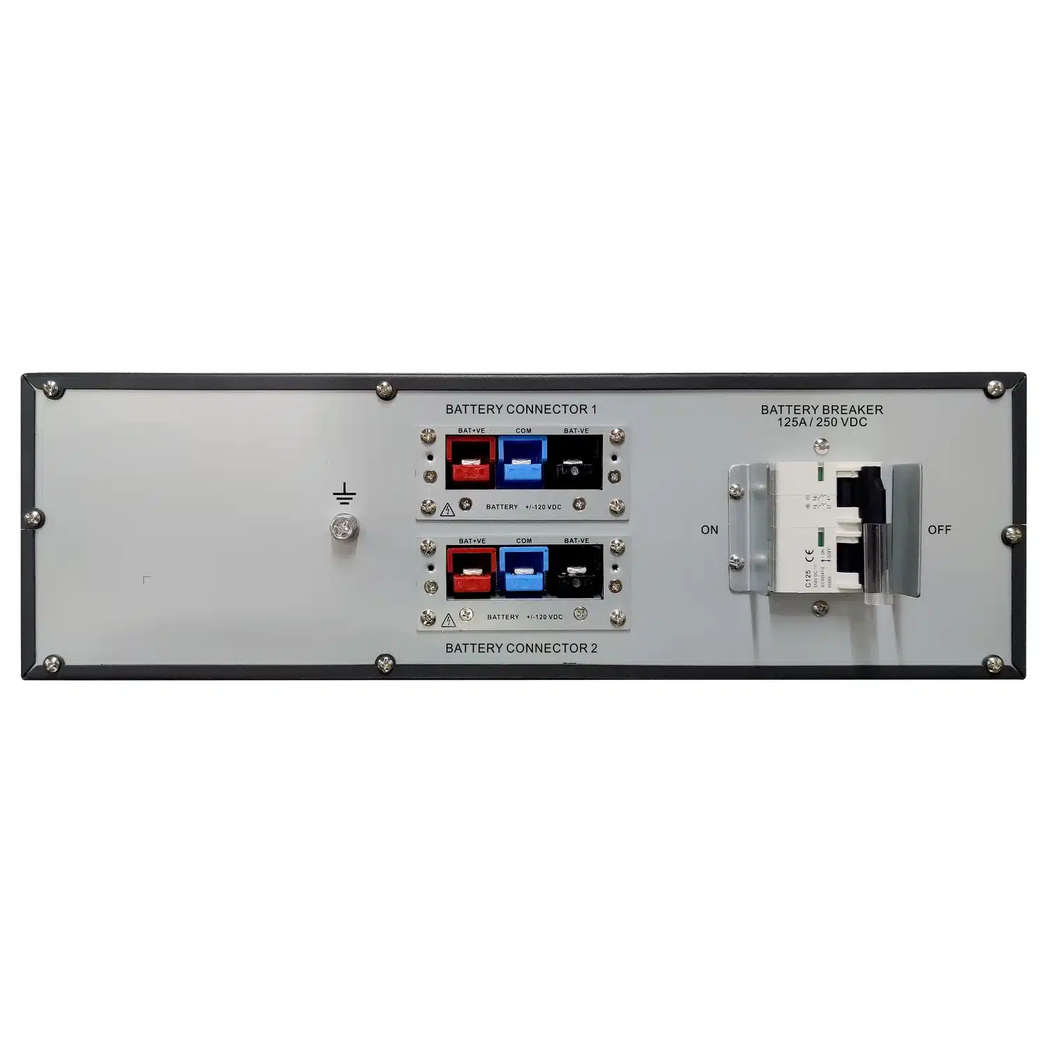 Battery options are available in various capacities, ranging from 5180 VAh to 17430 VAh, allowing you to choose the appropriate capacity for your power requirements. The UPS features a multifunction LCD control panel, offering easy monitoring and control. It also supports emergency power off functionality, allowing you to quickly shut down the UPS in critical situations.