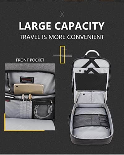 The backpack has a comfortable design, with padded shoulder straps and a breathable mesh fabric on the back panel, which provide extra comfort and support, making it suitable for long periods of wear. The backpack also has a luggage strap that allows you to attach it to the handle of your suitcase, making it easy to transport when traveling.