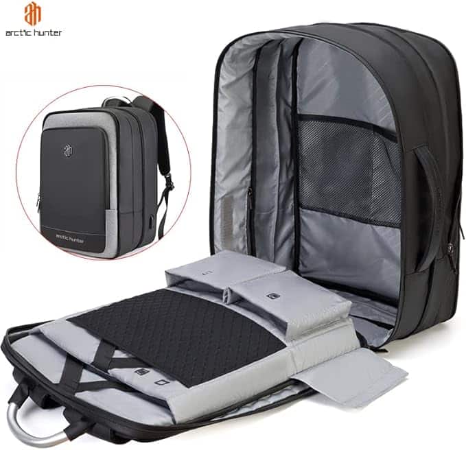 he Arctic Hunter B00227L Multifunction Bag Expandable Large Capacity Backpack with USB Charging Port is a versatile and functional backpack designed for people who need to carry their essentials while on the go. It is made of high-quality, durable and lightweight materials, which makes it comfortable and easy to carry.