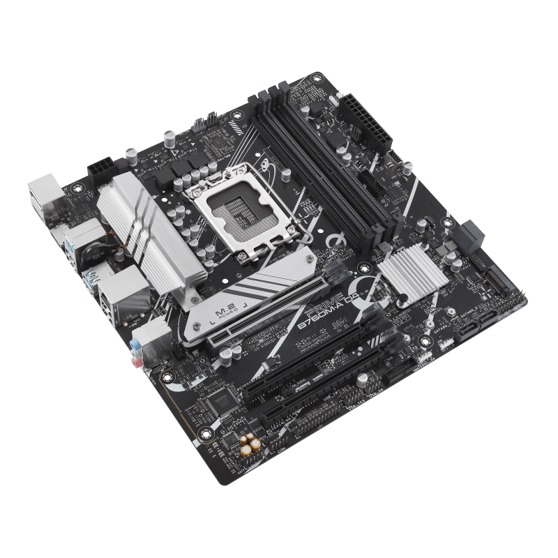 Engineered to handle high workloads, the PRIME B760 series includes multiple onboard heatsinks and hybrid fan headers for efficient cooling.