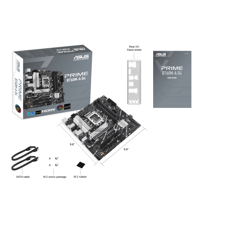 Intel® B760 (LGA 1700) mATX motherboard, PCIe 4.0, two M.2 slots, Realtek 2.5Gb Ethernet, DisplayPort, Dual HDMI®, SATA 6 Gbps, rear USB 3.2 Gen 2, front USB 3.2 Gen 1 Type-C®, Aura Sync