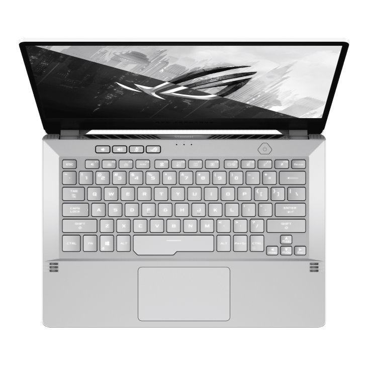The Zephyrus G14 comes with an uncompromised keyboard that fits full-size functionality into a much smaller machine. It’s the first ROG laptop to feature fingerprint login on the power button, making waking up the laptop as simple as unlocking your phone. The desktop-inspired layout makes you feel right at home with dedicated hotkeys that put volume, microphone mute, and ROG Armoury Crate software within easy reach. Overstroke technology triggers higher in each keystroke for faster responsiveness, and the ErgoLift design raises the keyboard at an angle to make typing more comfortable than ever.