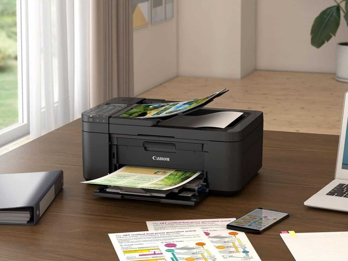 The Canon Printer also helps users save time and paper with automatic two-sided printing and a 20-sheet automatic document feeder for copying and scanning multi-page documents. It delivers high-quality printing for both home and office use, with pigmented black ink for crisp text and pigmented ink for vibrant colors in documents and photos.