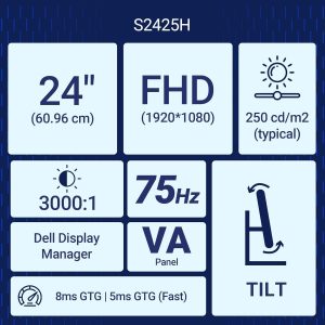 The Dell SE2425H monitor is designed to deliver a reliable and comfortable viewing experience for daily tasks. With a 23.8-inch Full HD display, it offers sharp image quality suitable for work, browsing, and entertainment.