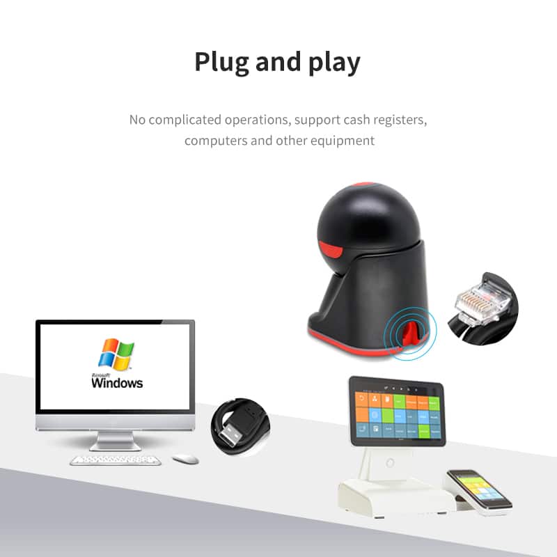 • Platform QR code scanner, just connect the USB cable to computer USB interface. No need to install any software Easily work with Windows XP/7/8/10, Mac OS, Linux and more.