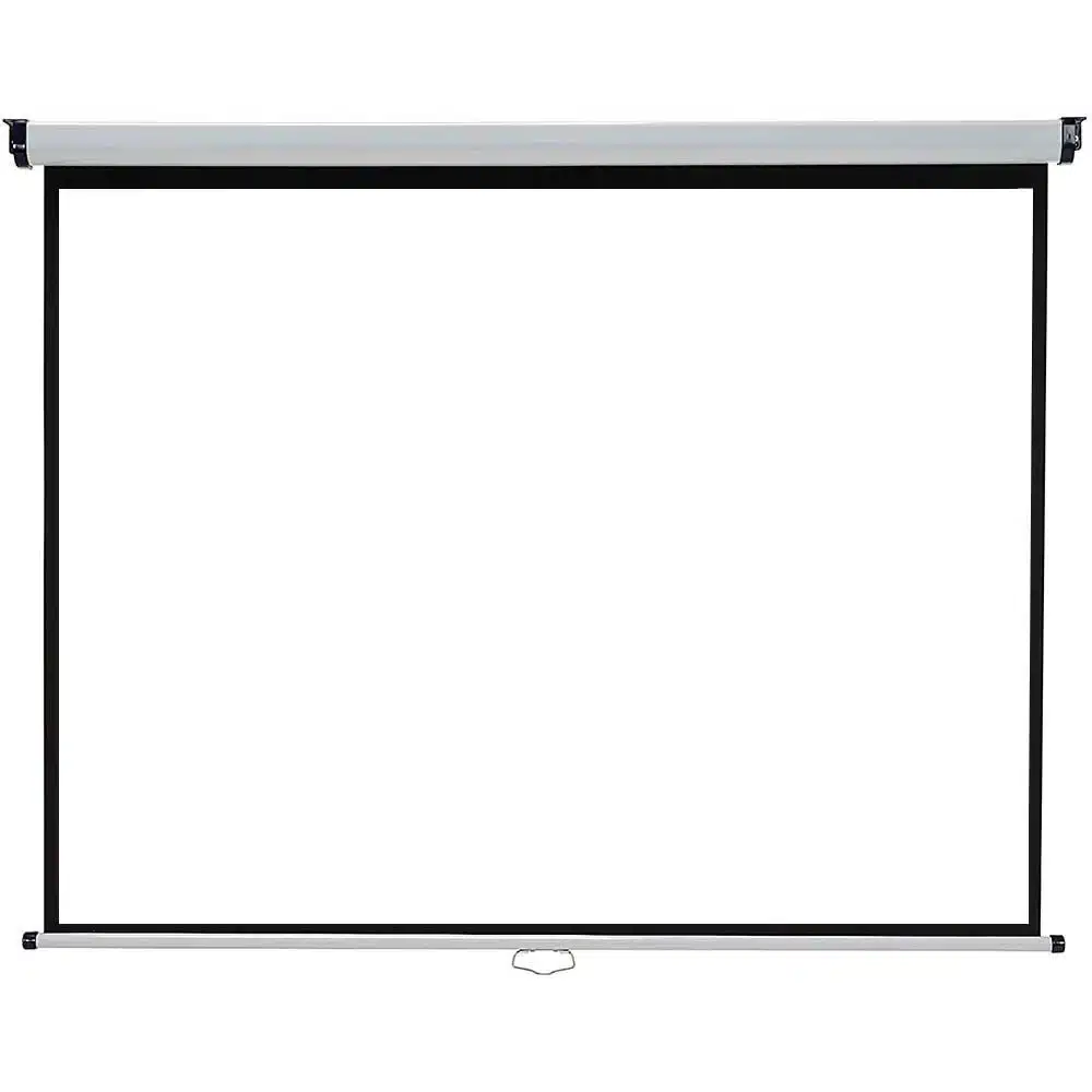 Designed for stability and durability, the screen features a double wall and ceiling mount, making it ideal for use in classrooms, conference rooms, or home theaters. Its sleek design and easy installation make it a practical choice for professional presentations or immersive home entertainment.