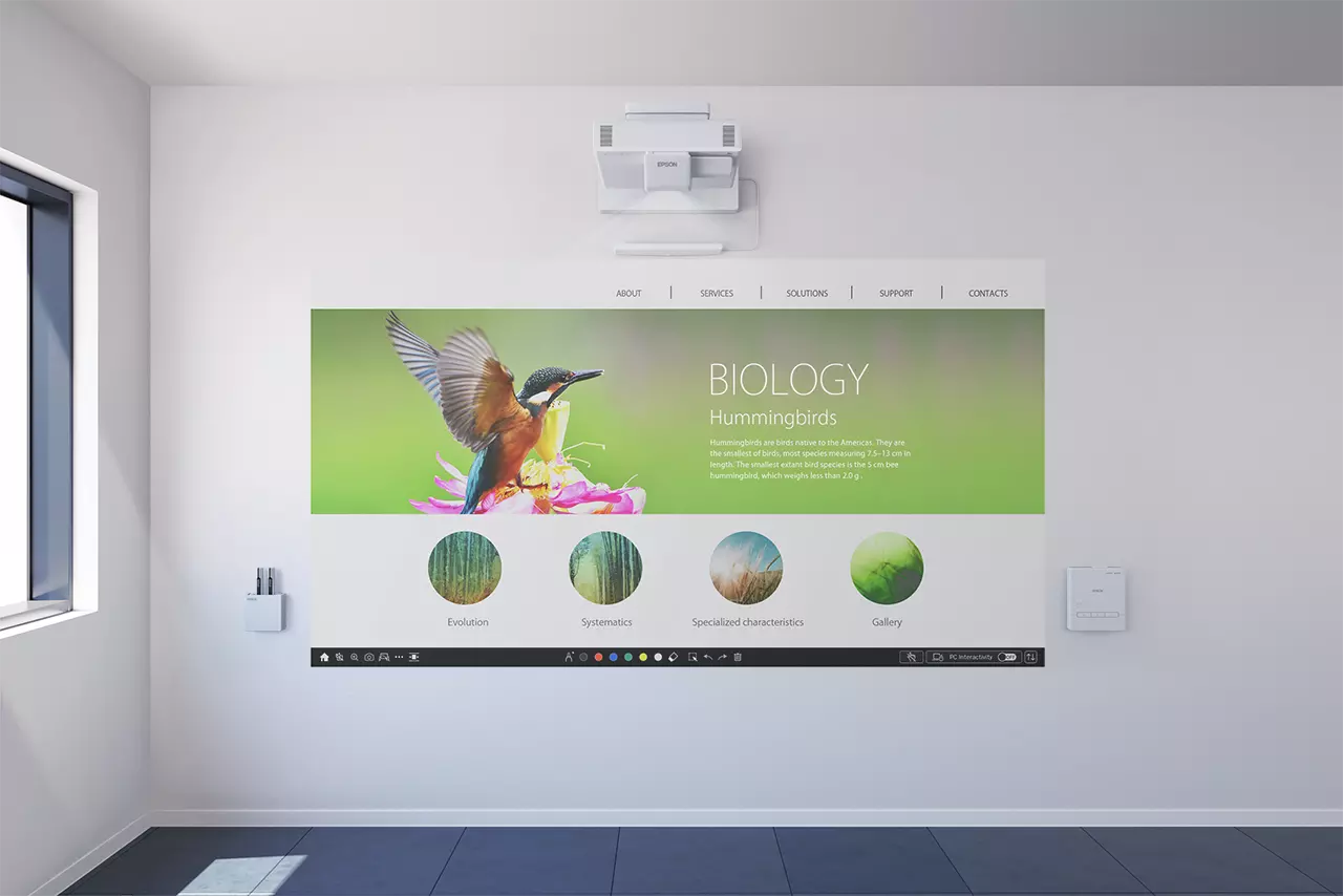 Engage your audience in compelling and fascinating presentations on a larger seamless screen by joining two Epson EB-1485Fi projectors (with interactivity), or up to four (without interactivity) at any one time. With Epson EB-1485Fi’s built-in edge blending function, you can now interact, control, and present immersive content seamlessly over one large panoramic screen.