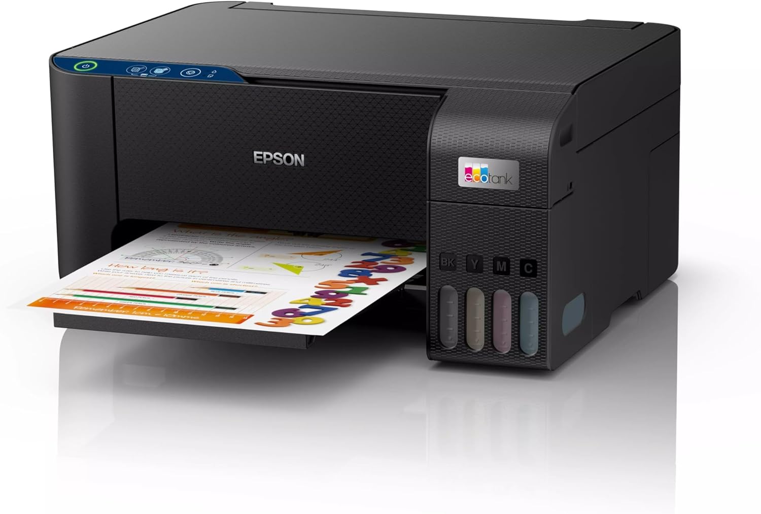 The EcoTank system comes with enough ink to print up to 8,100 black pages and 6,500 color pages, reducing the need for frequent refills and lowering total cost of ownership.