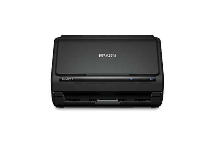 Get organized fast with the WorkForce ES-500W II wireless duplex document scanner. This reliable, easy-to-use performer speeds through scans up to 35 ppm/70 ipm1, capturing both sides of each sheet in one pass. Its 50-sheet Auto Document Feeder allows you to breeze through stacks of documents of varying sizes. Intuitive Epson ScanSmart Software2 means you can easily preview, email and upload your scans. The included TWAIN driver ensures compatibility with most document management software. Wirelessly scan to cloud storage accounts2 and create searchable PDFs. You can also scan directly from your mobile device using the Epson Smart Panel app3. Color and image adjustment features such as auto crop, staple protection, dirt detection and paper-skew correction help ensure remarkable image quality.