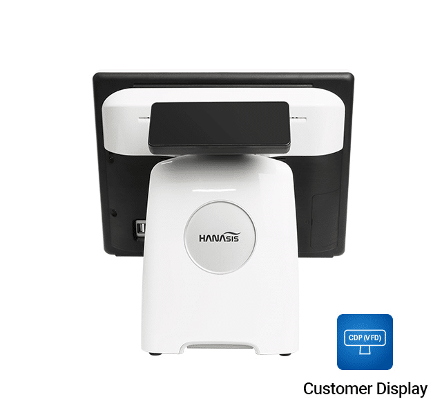 - Compact All-in-One Design: Unlike traditional POS systems that consist of separate components such as a monitor, CPU, and peripherals, the Hanasis Hit Plus combines all these elements into a single compact unit. This streamlined design saves space and reduces clutter on the sales counter, making it ideal for businesses with limited space.