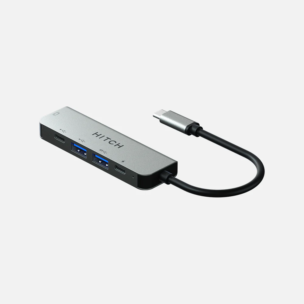HITCH’s Mini Pro Hub adds a full-function two USB 3.0 ports, two USB-C ports, and an HDMI port; The Mini Pro Hub combines all of your essential ports in one sleek, user-friendly hub, with many options for fast data transfer and a modern aluminum design.