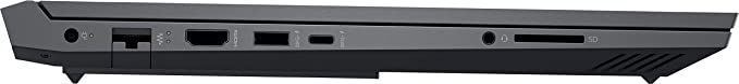 - Ports: The HP Victus offers a wide range of connectivity options, including one USB Type-C®, three USB Type-A ports, an HDMI 2.1 port, a headphone/microphone combo, and an RJ-45 Ethernet port. The USB Type-C port supports USB Power Delivery, DisplayPort™ 1.4, and HP Sleep and Charge.