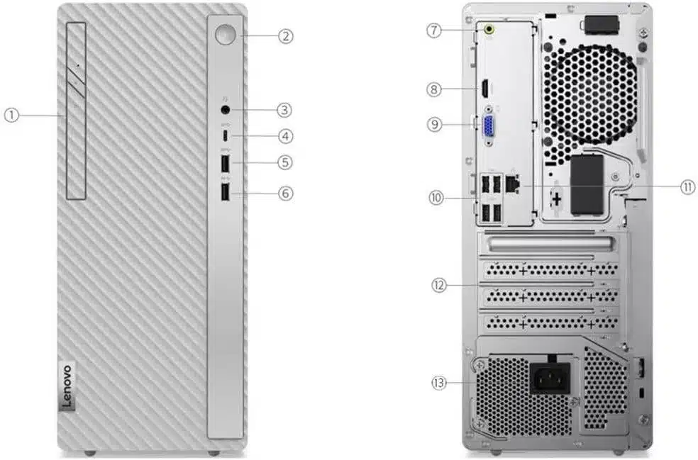 The IdeaCentre 5 offers a USB-C port and two USB 3.1 ports to choose from on the front of the tower, within easy reach. It also comes with four USB 2.0 ports, a 3-in-1 card reader, and an HDMI port, for all of your peripheral connections. The front panel has a slider door to protect the ports from dust; simply slide it to the right to do so and to access the optional optical disc drive.