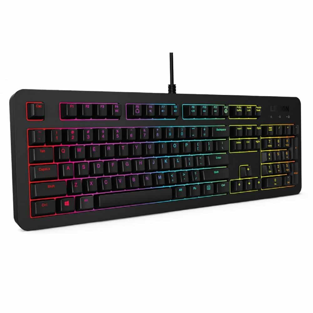 Designed to level the playing field, the Lenovo™ Legion K300 Gaming Keyboard gives entry-level gamers everything they need to compete with the pros at a fraction of the cost. Featuring a full-size layout, all keys are programmable, and a 24-key rollover membrane with 5-zone RGB lighting sets a strong foundation of style and performance. Its compact design and adjustability make it the perfect companion for both tournaments and casual use.