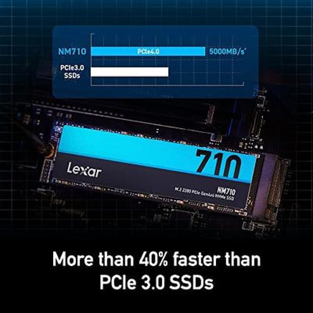 Upgrade your system with the Lexar NM710 M.2 2280 PCIe Gen4x4 NVMe SSD, more than 40% faster than PCIe 3.0 SSD3 with higher transfer speeds of up to 5000MB/s read and 4500MB/s write.