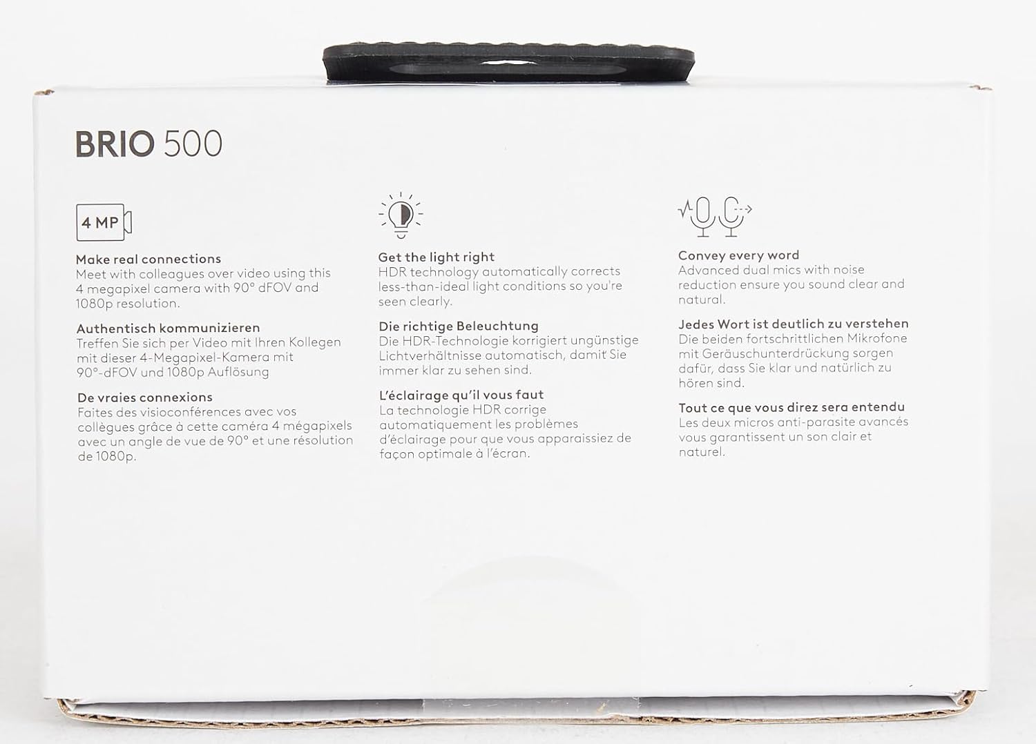 Brio 500 RightLight 4 automatically adjusts to your environment so you appear well-lit even in poor lighting conditions.