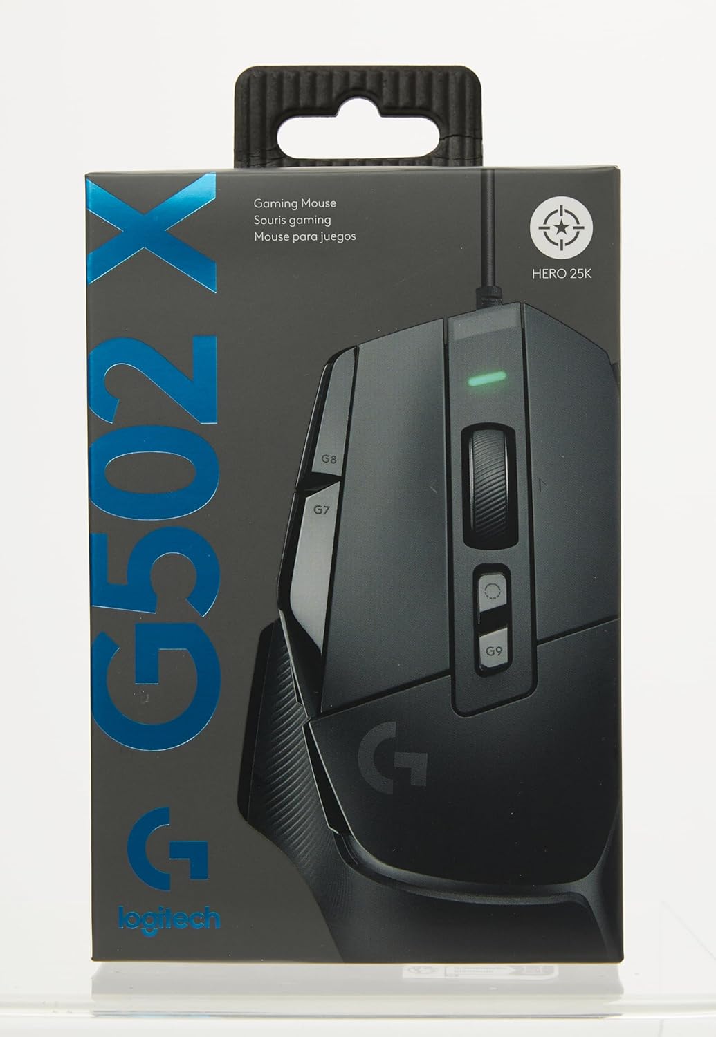 Logitech G G502 X Wired Gaming Mouse – LIGHTFORCE hybrid optical-mechanical primary switches HERO 25K gaming sensor compatible with PC – macOS/Windows – Black