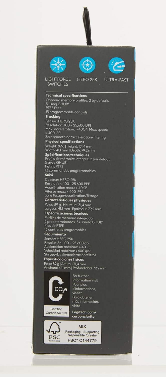 Iconic G502 design meets an impressive weight reduction down to 89 grams thanks to thin-wall exoskeleton for minimum material and maximum rigidity, lightened scroll wheel, and more.