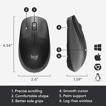 Logitech M190 Full Size Wireless Mouse Charcoal- Black