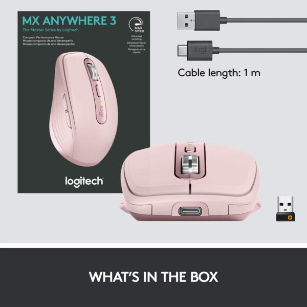 Logitech MX Anywhere 3 Compact Performance Mouse – Wireless, Magnetic Scrolling, Ergonomic, 4000DPI Sensor, Custom Buttons, USB-C Bluetooth, Apple Mac, iPad, Windows PC, Linux, Chrome – ROSE