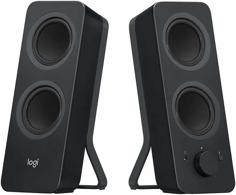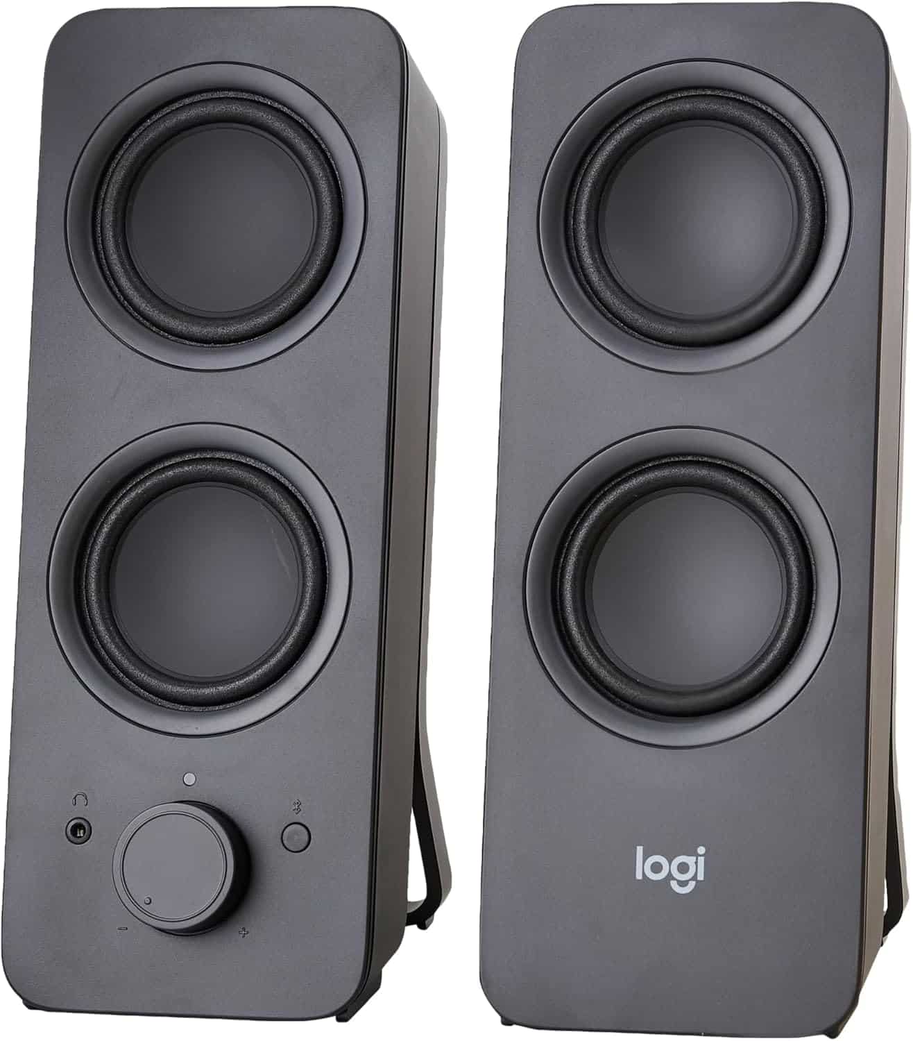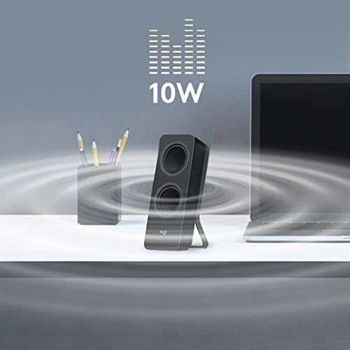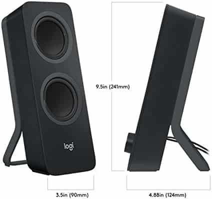 | Technical specs | Total watts (Peak): 10 W Total watts (RMS): 5 W Bluetooth version: 5.0 Reliable 20-meter line of sight range 3.5 mm input: 1 Headphone jack: 1 Bluetooth pairing and volume controls located on front of right speaker. |
