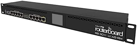 RB3011UiAS-RM Unit comes with 1U rackmount enclosure, a touchscreen LCD panel, a serial console port and PoE output functionality on the last Ethernet port.