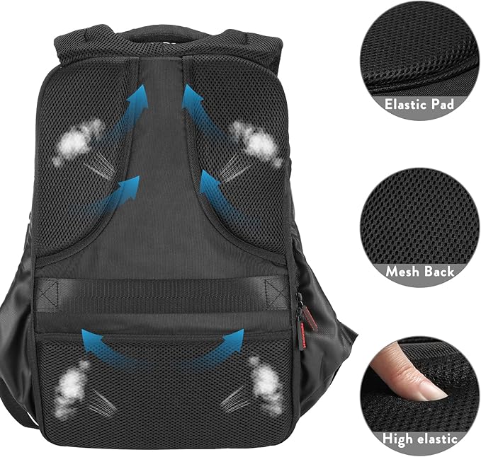 Highly Storable Interior – The thick internal compartment material ensures that the laptop is not hurt by other accessories. Organized double-layer mesh pockets for better small parts storage and maximize the backpack interior space to pack more stuffs in order.