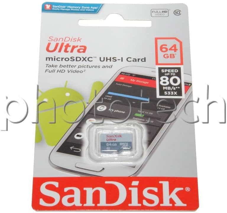 The SanDisk Ultra® microSD™ UHS-I card gives you the freedom to shoot, save and share more than ever before. With capacities up to 512GB, our SanDisk Ultra microSD™ card has room for even more hours of Full HD video3 and delivers transfer speeds of up to 100MB/s2 to help you move that content fast.