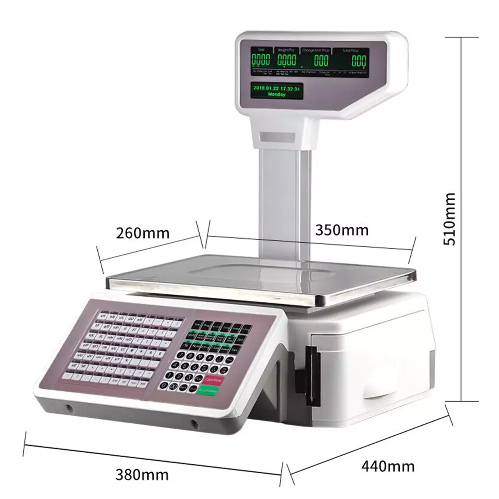 1.Full English display, can display date and time, store name, product name, operation steps, etc