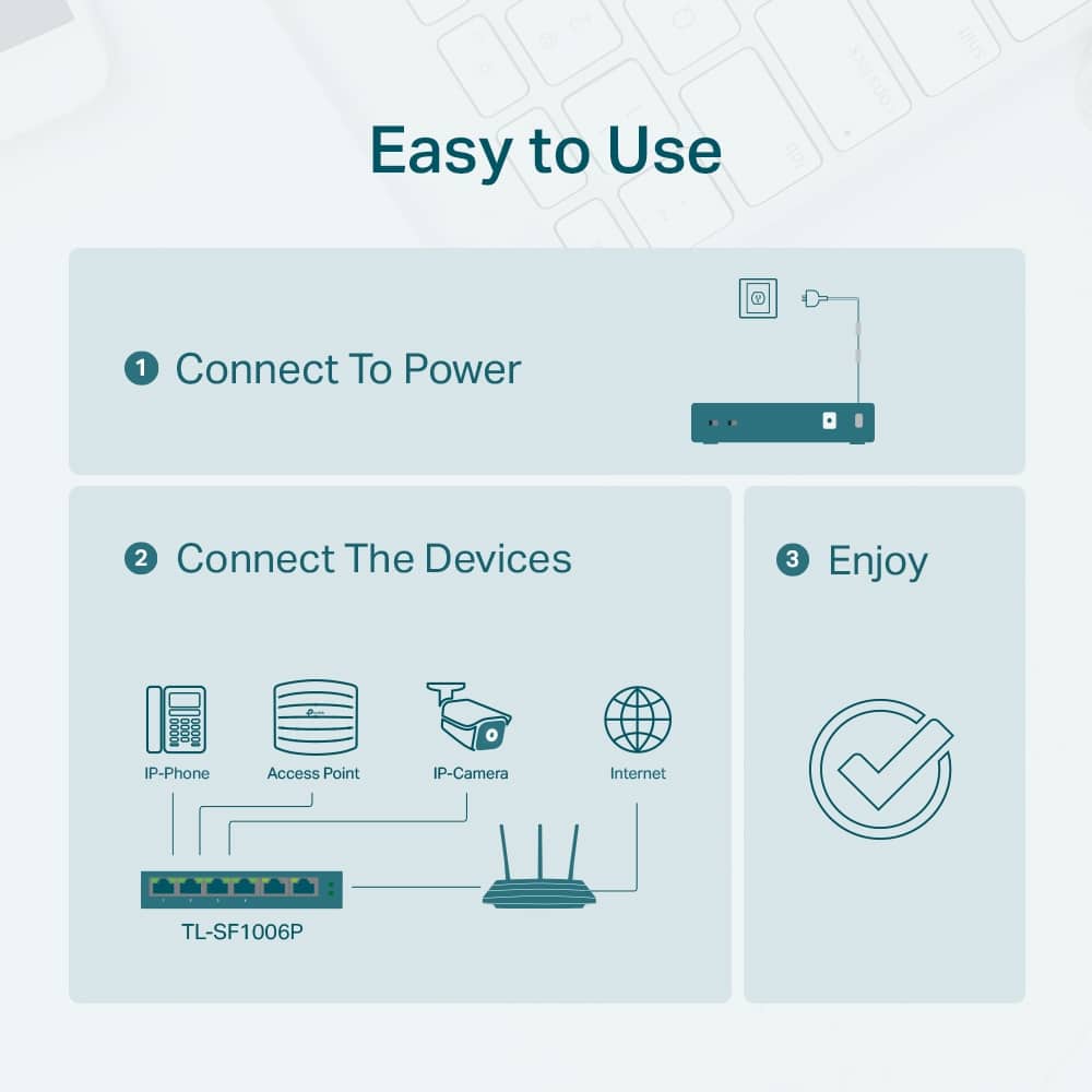 | Package Contents | • TL-SF1006P • Power Adapter • Installation Guide |