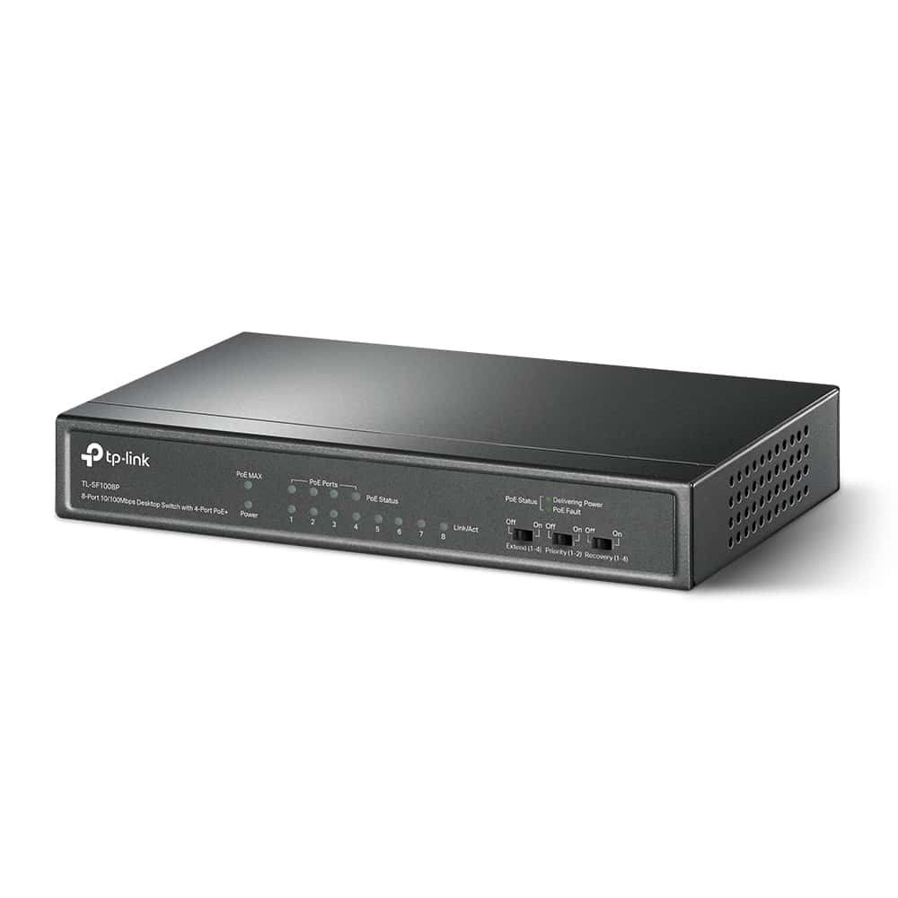 | Interface | • 8× 10/100 Mbps RJ45 Ports (4× 10/100 Mbps 802.3af/at PoE ports) • AUTO Negotiation • AUTO MDI/MDIX |
