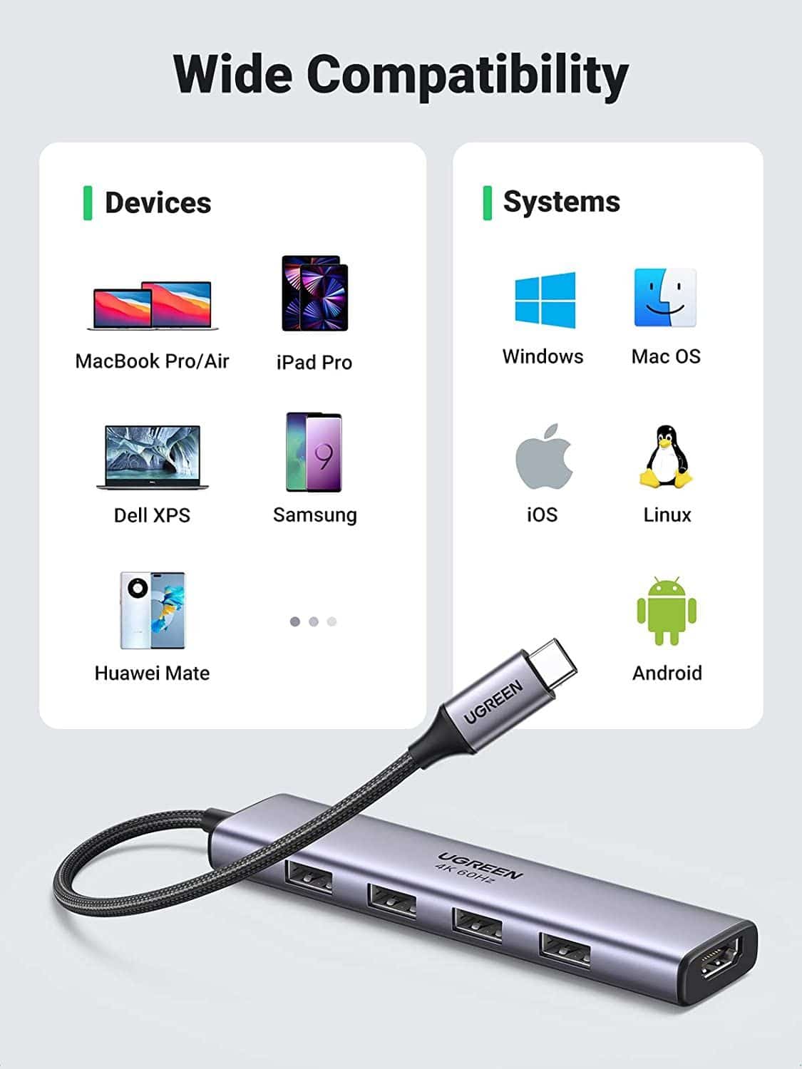 | Output | 4xUSB3.0 female, 1xHDMI |