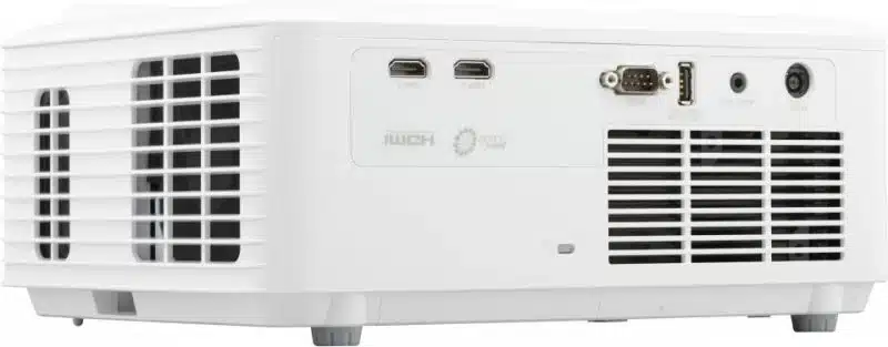The projector’s high native contrast ratio, achieved through its Texas Instruments 0.65″ DMD chip, enables deeper blacks and brighter whites. As a result, it delivers more visual depth, clearer images, and enhanced legibility.